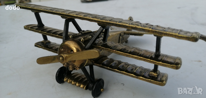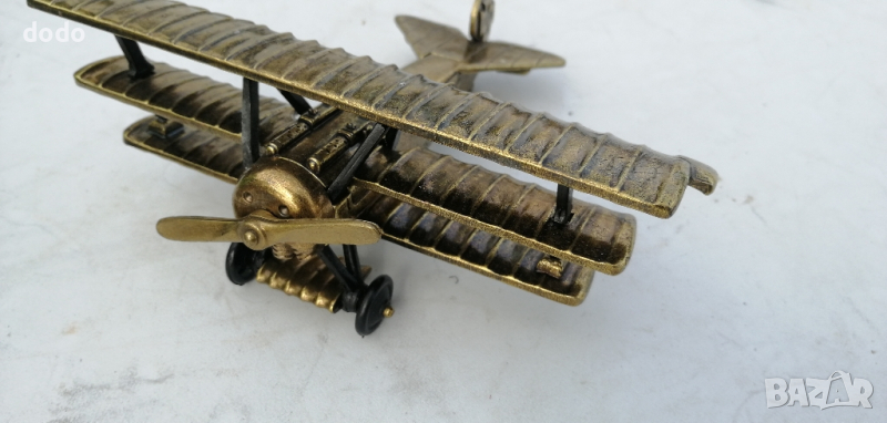 Месингов модел на триплана на Червения барон, модел на самолет Fokker Dr 1, боен самолет на германските военновъздушни сили, преспапие Red Baron