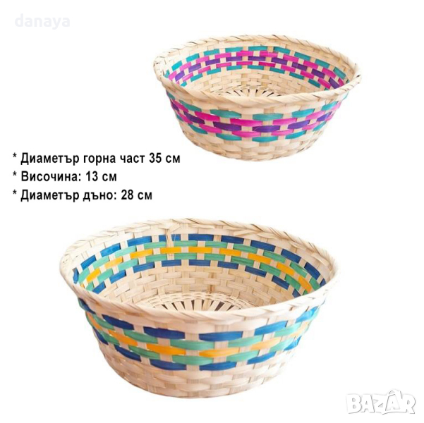 Размери – диаметър горна част: 35см; диаметър дъно: 28см; височина: 13 см