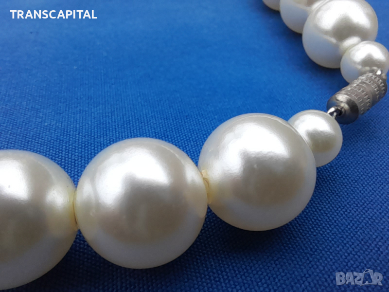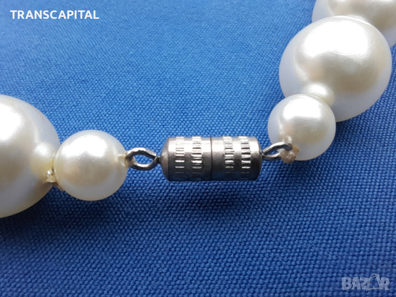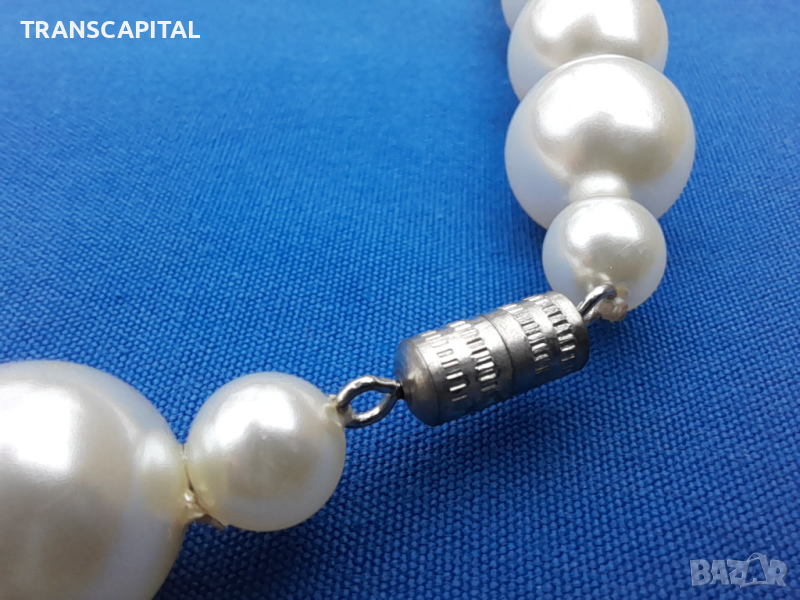 Дължина 50 сантиметра. С винтова закопчалка.Нов , неупотребяван от соц времето. Без забележки. Перлите ми казаха че не са истински. За колекция , подарък или употреба. Попълвам 10 % намаление на транспорта