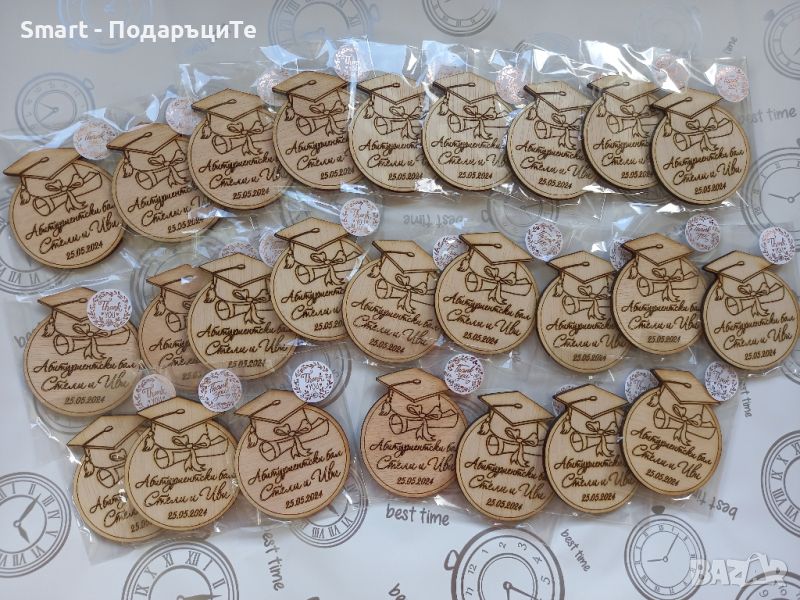 Дървени магнити 8 см за училище, бал, юбилей, кръщене, Великден или друг празник → Обява 44742358