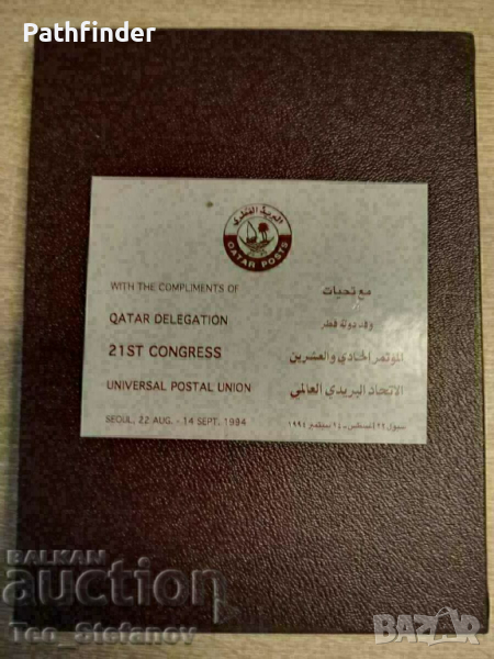 Рядък официален албум, издаден от Катарските пощи по случай Световния конгрес на пощите в гр.Сеул през 1994г.