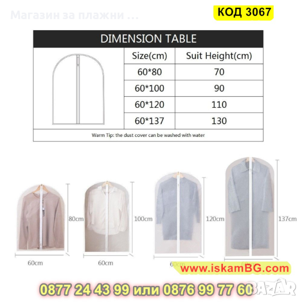 - В 100 х Ш 60 см - подходящ за съхранение на дрехи с височина до 90 см