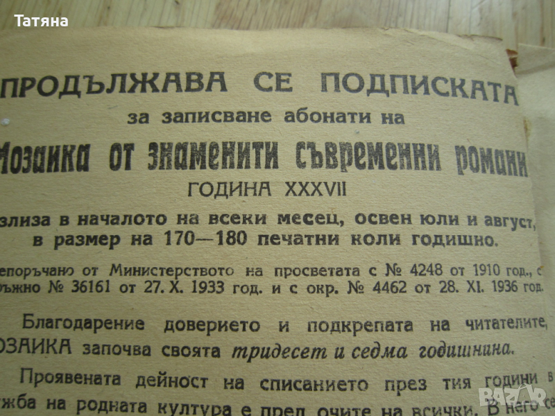 МОЗАЙКА ОТ ЗНАМЕНИТИ СЪВРЕМЕННИ РОМАНИ -ИЗдадена 1947г ;250стр.