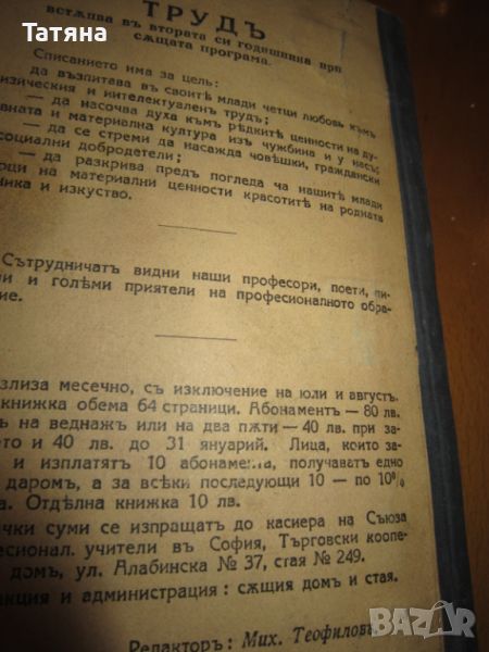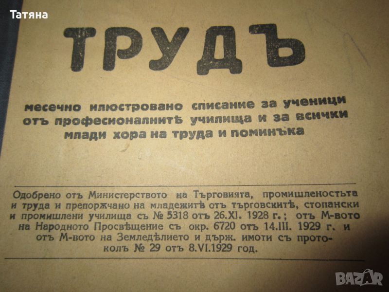 ТРУДЪ -Издание на СЪЮЗЪТ НА УЧИТЕЛИТЕ ОТ ПРОФЕСИОНАЛНИТЕ УЧИЛИЩА В БЪЛГАРИЯ 1929-1930 г.