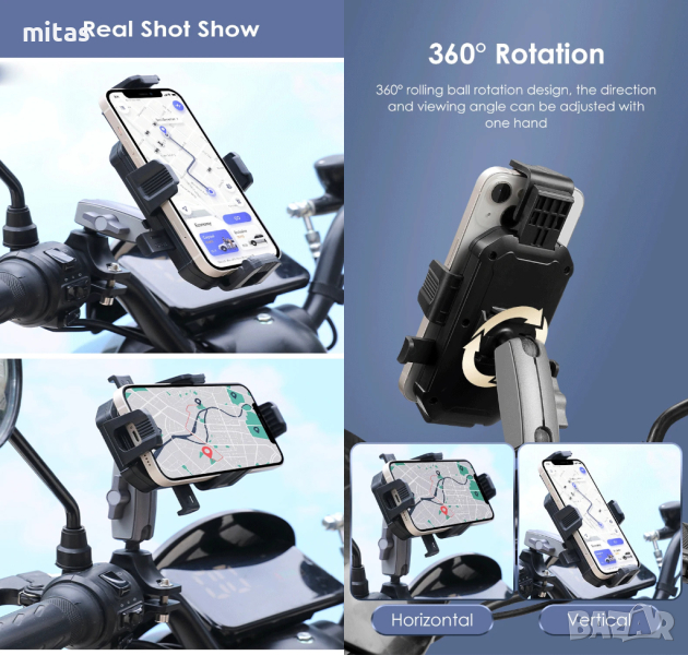 Универсална стойка за телефон, държач 360 градуса - Мото, Вело, Скутер