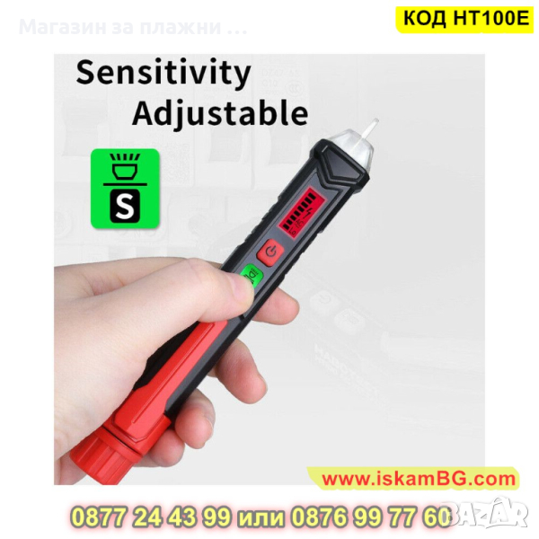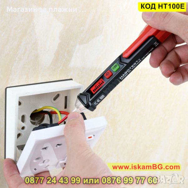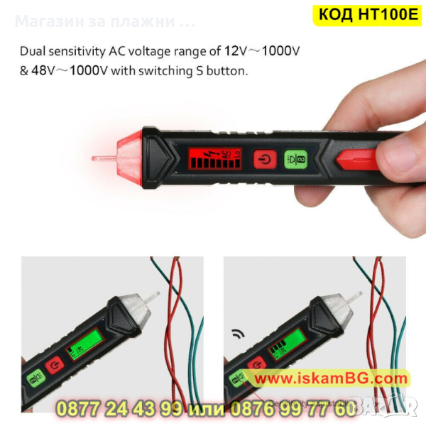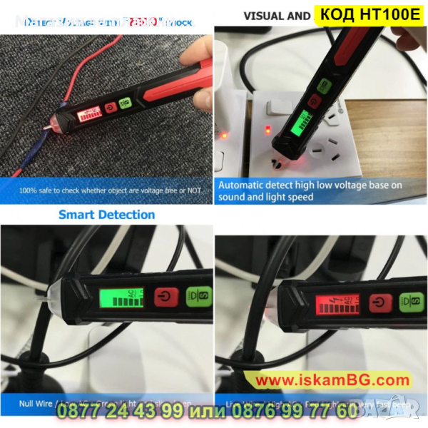 Индикация с деления на LED екран, който свети в зелено при нормални стойности и в червено при високи. Налична звукова индикация. Може да откривате бе проблем кабели в стени, да разпознавате фазата от нулата. Не е нужно да обелвате кабела, както е при обикновените фазомери.