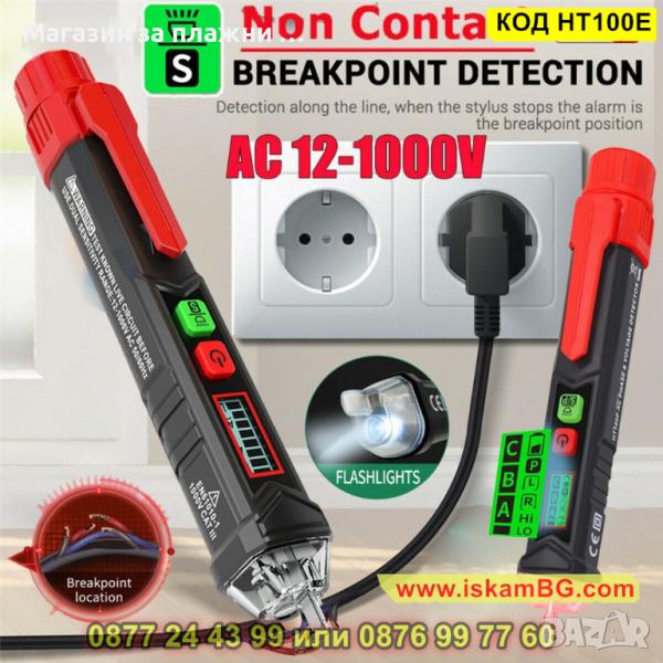 Първоначалната информация за това дали компонентът е под напрежение се предоставя от оптичния и акустичен сигнал на безконтактния тестер за напрежение. Обхват на откриване на напрежение: Висок: AC12~1000V ; Нисък AC48~1000V