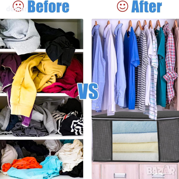 GOESORT 4 броя сгъваеми органайзери от плат за съхранение на дрехи, 35L, сиво