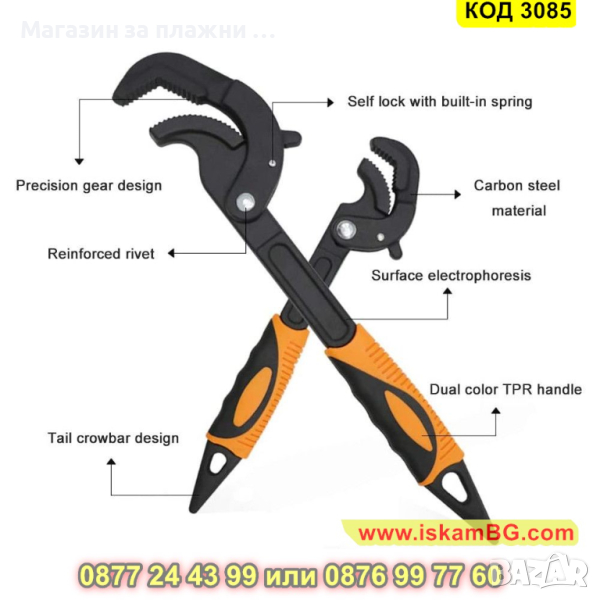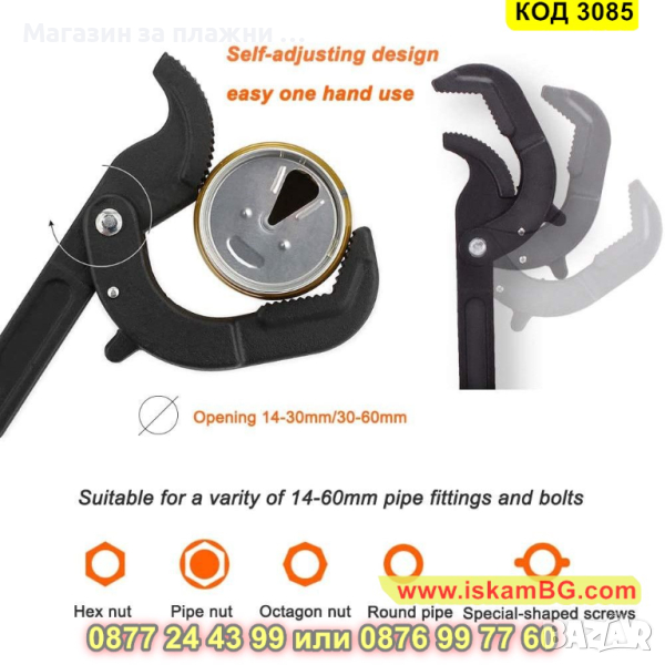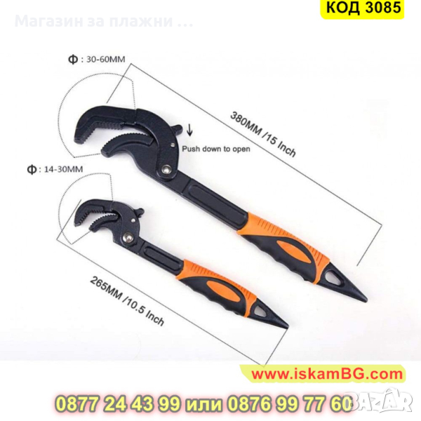 Към комплекта получавате 2 ключ: малък ключ с регулируема челюст от 14 до 27мм и голям с регулируема челюст от 27 до 63мм
