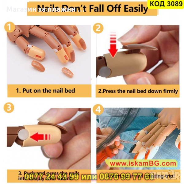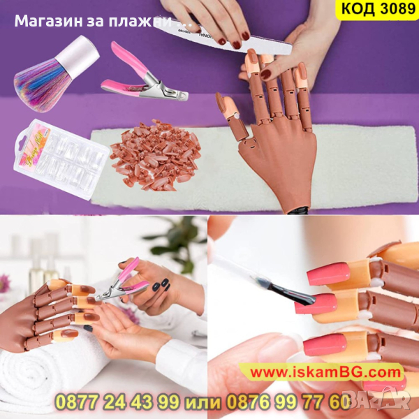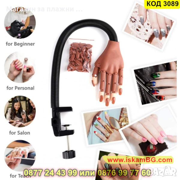 Пластмасова регулируема тренировъчна ръка в комплект със 100 бр. нокти.