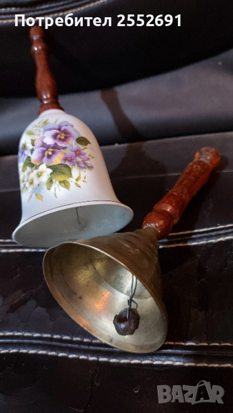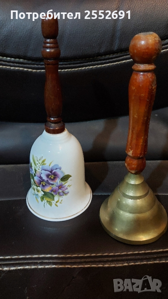 2 броя камбани с дървени дръжки. Порцеланова и месингова. Височина- 18 и 19см. Цената е за един брой.