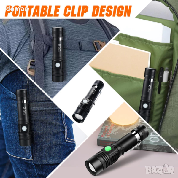 NAKCNM 2 броя мини LED фенерче, акумулаторно, 4 режима, джобна щипка, регулируем фокус, вкл. батерии