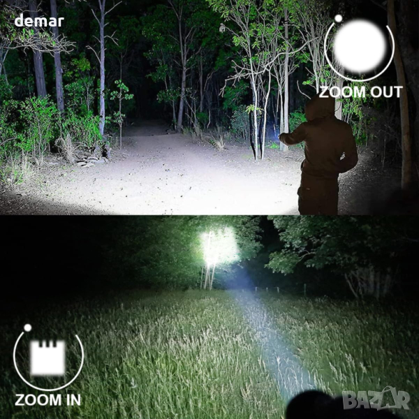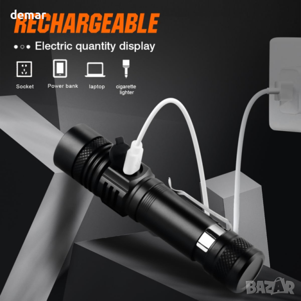 Това универсално LED фенерче предлага 4 режима на осветяване (високо, ниско, стробоскоп, SOS с продължително натискане за активиране) и регулируем фокус, идеален за различни нужди от осветление. Опънете главата на фенерчето за опции за прожектор или прожектор. С усъвършенстван XML2 T6 LED чип, той доставя до 1200 лумена на 600 метра, което го прави мощен, но достатъчно малък за ежедневно носене. Включва щипка за джоб за лесно закрепване. С индикатор за захранване (червен за зареждане, зелен за напълно зареден) и възможност за презареждане през USB, той е удобен за продължителна употреба, съвместим с различни източници на зареждане. Изработен от военен алуминий, той е издръжлив и IPX6 водоустойчив, подходящ за неблагоприятни метеорологични условия. Идеален за дейности на открито и спешни случаи, той идва с две батерии от 2000 mAh, предлагащи до 12 часа светлина при среден режим, гарантирайки надеждност и удължен живот на батерията.