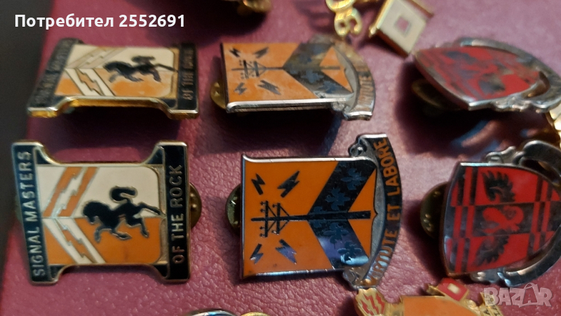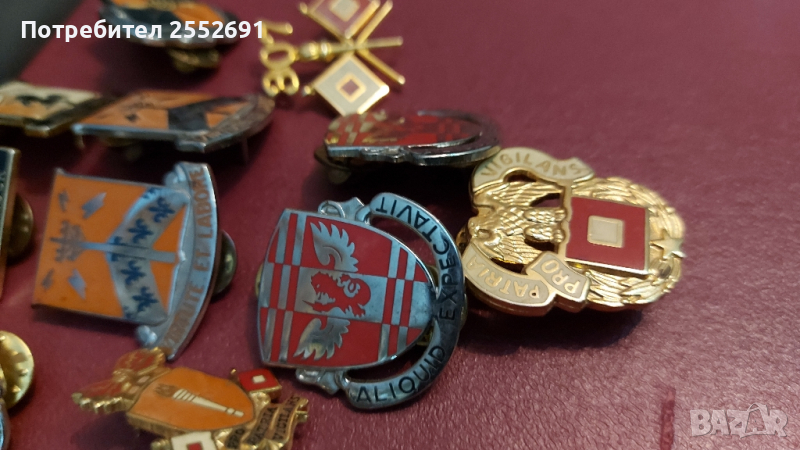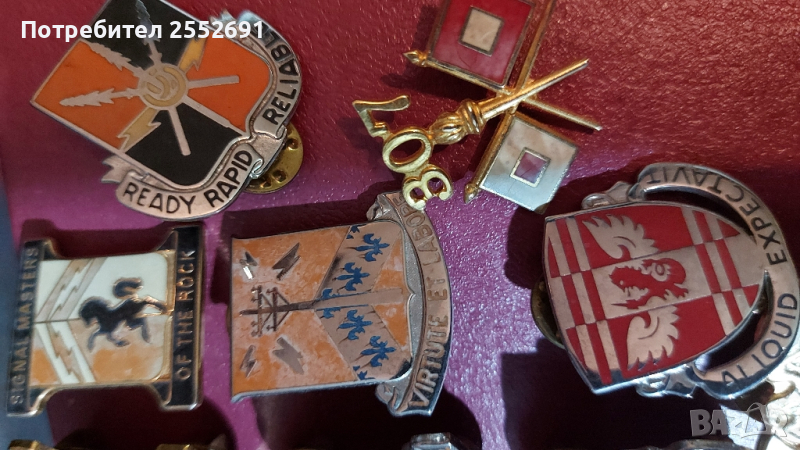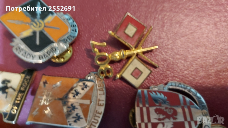 Емайлирани знаци на гербове и емблеми на USA армейски части. цената е за един брой.