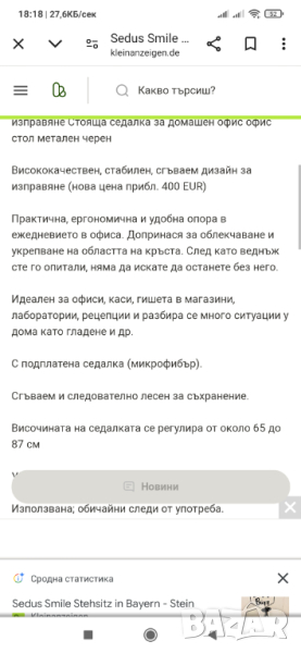 Стояща табуретка , стол SEDUS Smile- полуседнало положение . → Обява 44748835