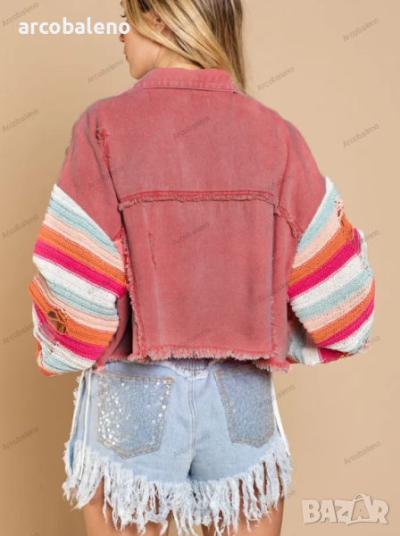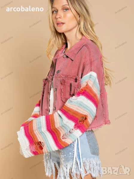Ежедневно дамско дънково яке с дълги ръкави в цвят дъга, 3цвята