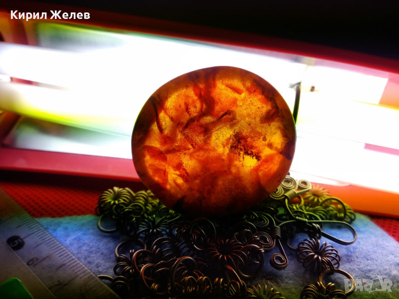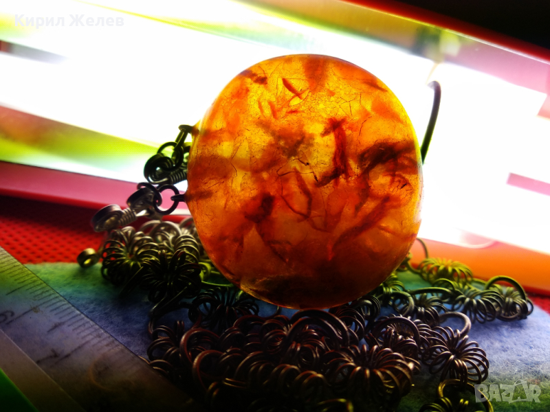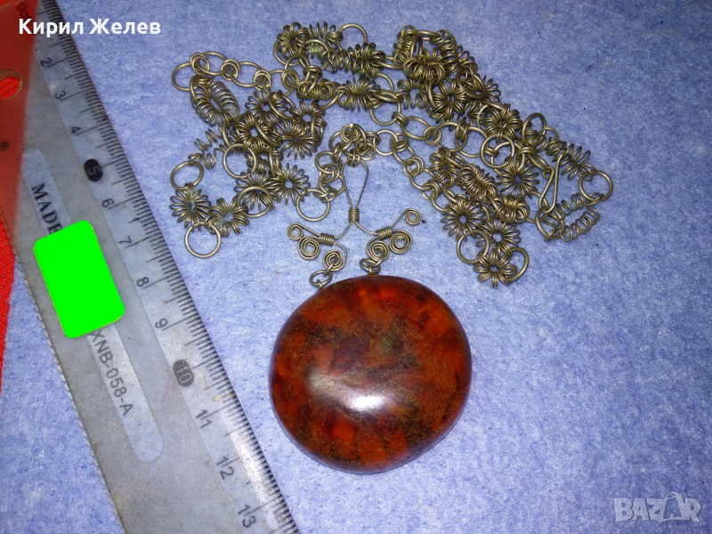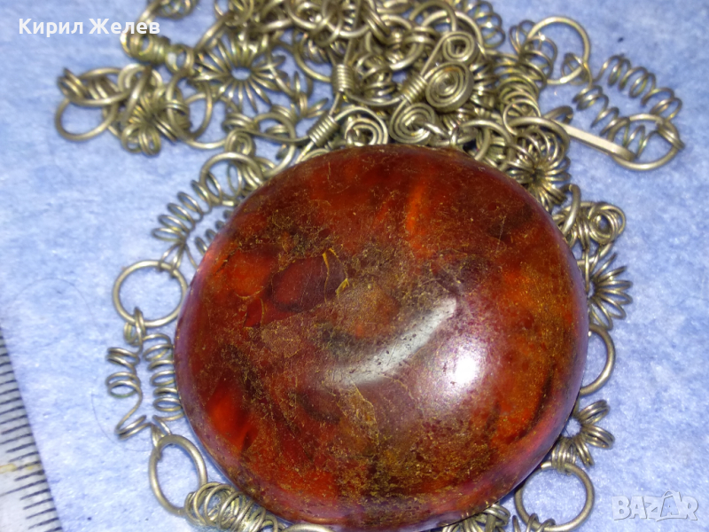 НАД 27000 ОБЯВИ За ВСЕКИ по НЕЩО! Натурален БАЛТИЙСКИ КЕХЛИБАР МЕДАЛЬОН РУСКА ОГЪРЛИЦА МЕЛХИОР 44159