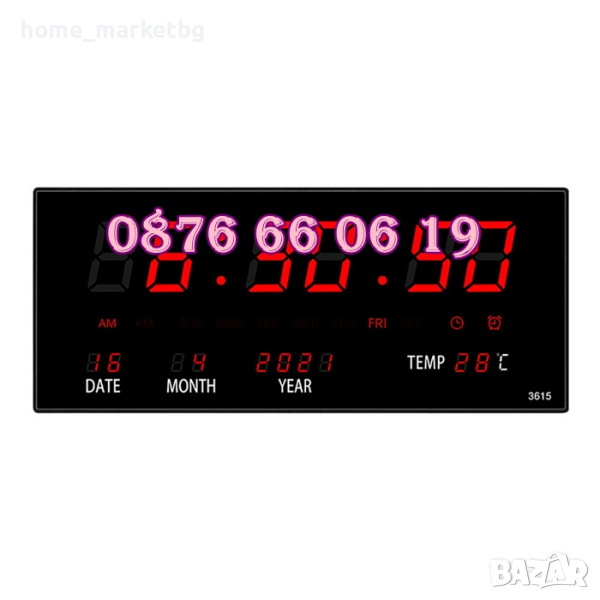 LED стенен електронен часовник 36 см, календар/термометър, снимка 1 - Стенни часовници - 44756669 LED стенен електронен часовник 36 см, календар/термометър, снимка 2 - Стенни часовници - 44756669 LED стенен електронен часовник 36 см, календар/термометър, снимка 3 - Стенни часовници - 44756669 LED стенен електронен часовник 36 см, календар/термометър, снимка 4 - Стенни часовници - 44756669 1/4
