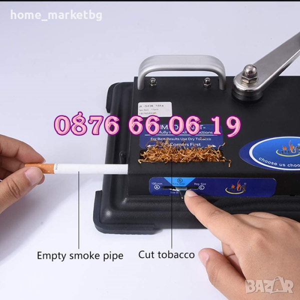 - Дебелина на цигарата: чрез ръчно копче на машината - избирате дебелината, с която желаете да бъде напълнен тютюнът в цигарената гилза