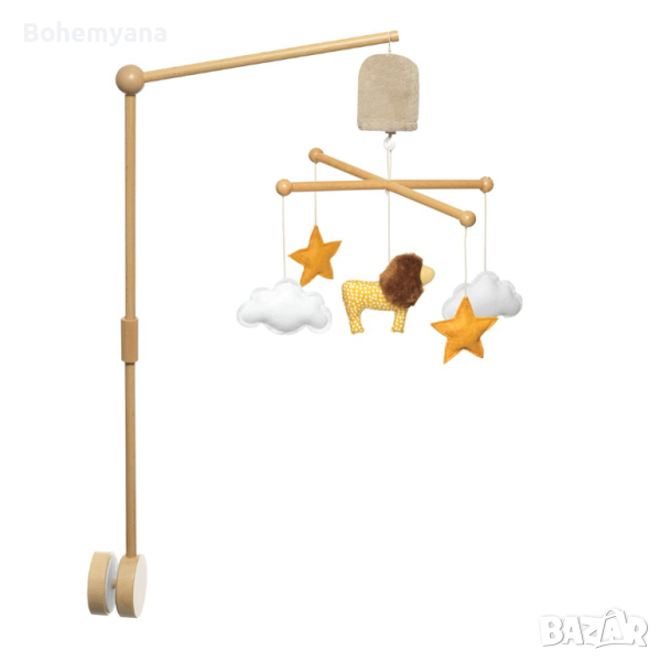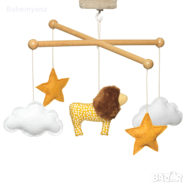 мелодия от „Цар Лъв“. На нея са закачени 5 текстилни играчки – лъв,