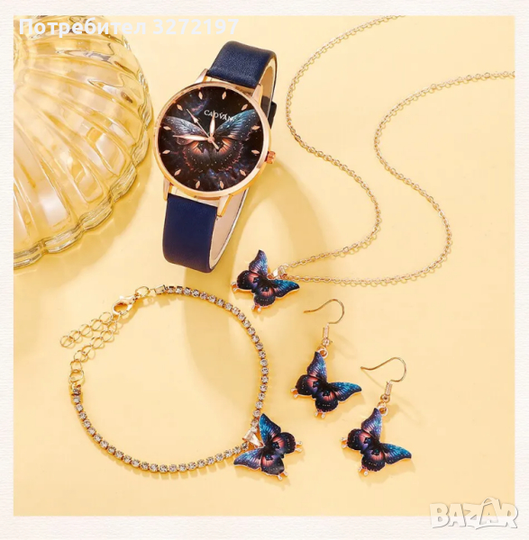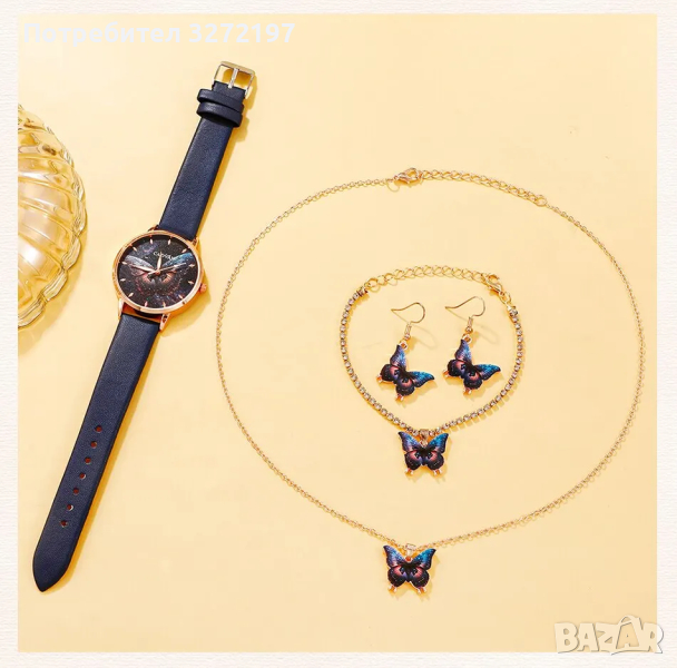 Комплект Дамски моден кварцов часовник+бижута,5 артикула