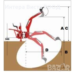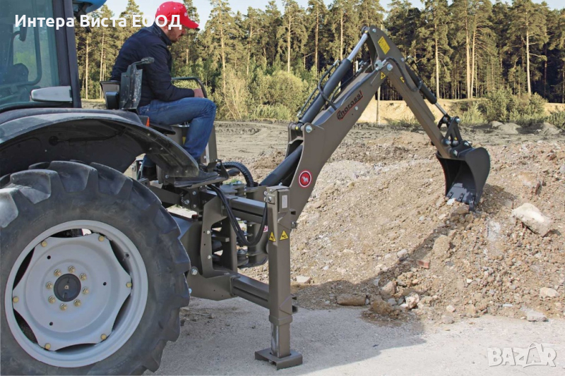 Височина на натоварване (A): 94 см, Дълбочина на копаене (B): 119 см, Максимална височина (C): 180 см, Ширина на копаене (D): 170 см, Максимална ширина: 195 см, Сила на пробив: 1100 кг, Ъгъл на въртене: 180° , Капацитет на помпата: 13 л/мин, Налягане: 180 bar, Тегло 266 кг, Триточково окачвате кат I, Всички разпределители са снабдени с клапани за максимално налягане, които контролират движението и предпазват от претоварване или злоупотреба по време на работа. Стандартно са оборудвани с независим маслен резервоар без използване на тракторно масло . Моделът е оборудван с два осцилиращи цилиндъра, позволяващи бързо завъртане на 180°. Седалката на оператора може да се регулира по височина и хоризонтално, което я прави практична и лесно достъпна. Хидравличният разпределител е с 4 лоста за управление; две за преместване на рамото за копаене и 2 за превключване от транспортно в работно положение. Окачване триточково, което е съвместимо с всички видове трактори. Произход на машината: Италия, състояние: ново