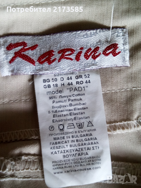 Дамски светло-бежев памучен панталон - български производител - фирма "Карина" гр. Русе. Много хубава изчистена кройка.