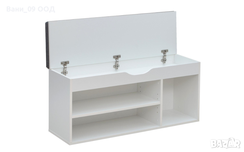 Красив и практичен модел шкаф за обувки с ракла за принадлежности и възглавница за сядане и удобно обуване