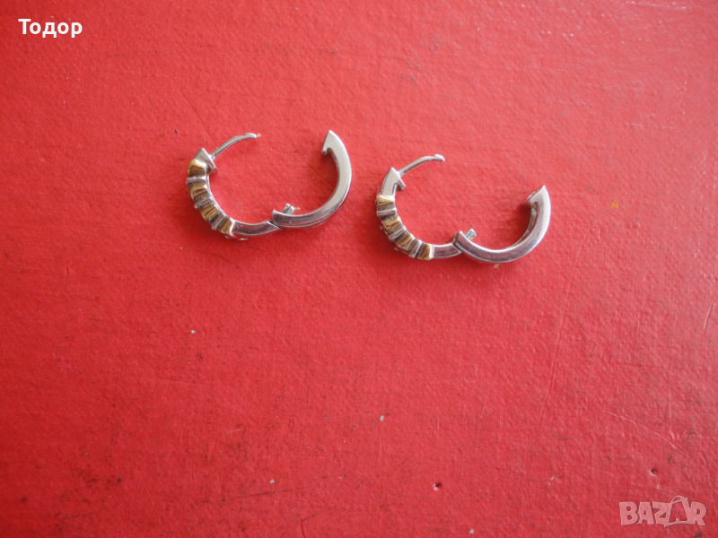 Страхотни сребърни обеци обици с камъни и позлата 2 → Обява 44761997