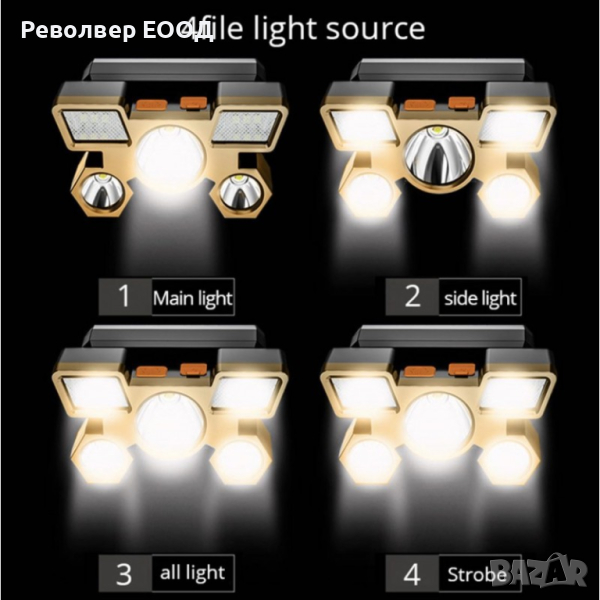 4 режима на светене: максимална яркост, светене и микс от различни светодиоди.