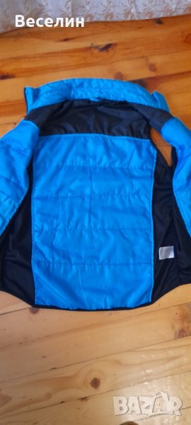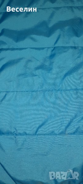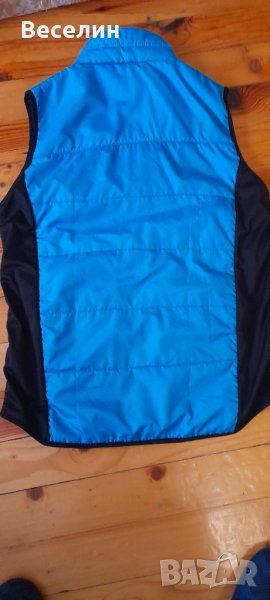 Оригинален спортен елек свето син цвят с два джоба с цип логото на марката дължина 70 см обиколка под мишниците 110 см