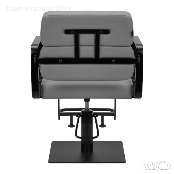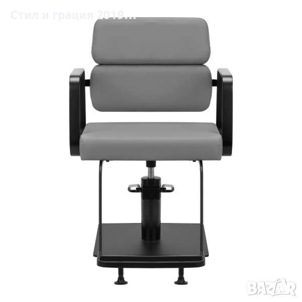 Механизмът за пълно завъртане на стола прави работата на фризьора по-ефективна и удобна . Здравата, плоска основа с квадратна форма гарантира стабилност по време на употреба. Матовата, гладка повърхност придава на елемента елегантен вид и го прави лесен за поддържане чист . Удобната седалка с пълнеж от пяна осигурява висок комфорт при използване , дори по време на много часове процедури. Геометричните метални подлакътници в златни нюанси позволяват правилното позициониране на раменете на клиента - това означава, че той не заравя главата си в раменете си или не се отпуска - което ясно улеснява извършването на прецизни процедури , включително подстригване. Стилна поставка за крака, предназначена за този модел, осигурява стабилна опора за краката на потребителя.