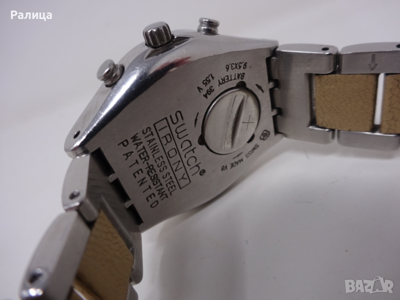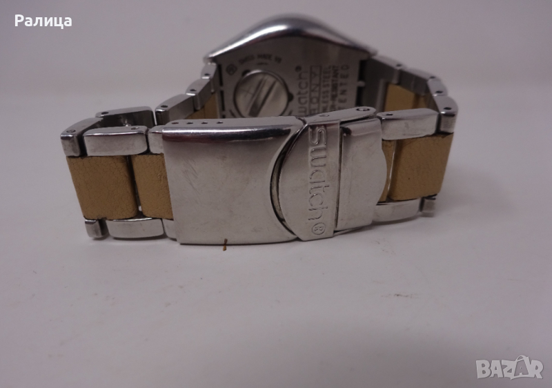 SWATCH Дамски кварцов часовник хронограф с оригинална верижка, с нова батерия, за ръка с обиколка на китката до 19 см, работи, цена 60 лв.