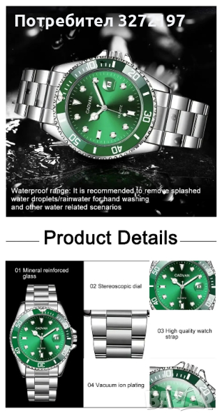 • Стил на зелена водна капка: Уникалният стил на зелена водна капка добавя нотка свежест и оригиналност към вашия външен вид.