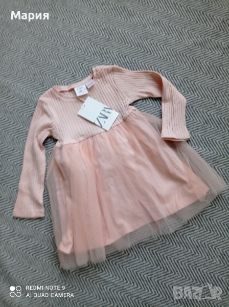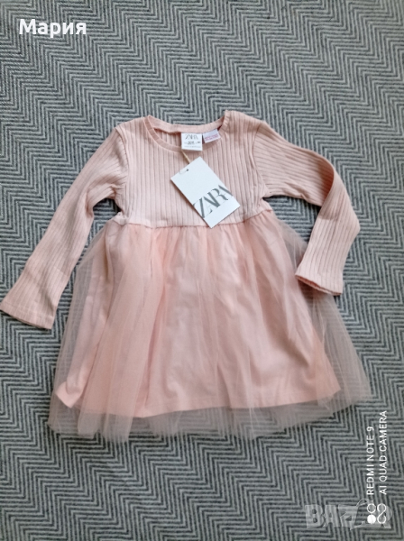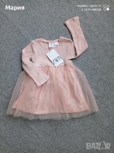 Zara детска рокля за момиче в бебешко розово, размер 12-18м, ръст 86см, нова с етикет