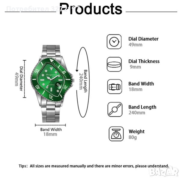 • Каишка от неръждаема стомана: Каишката е изработена от издръжлива неръждаема стомана, осигуряваща елегантен и стилен външен вид.