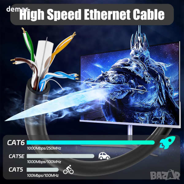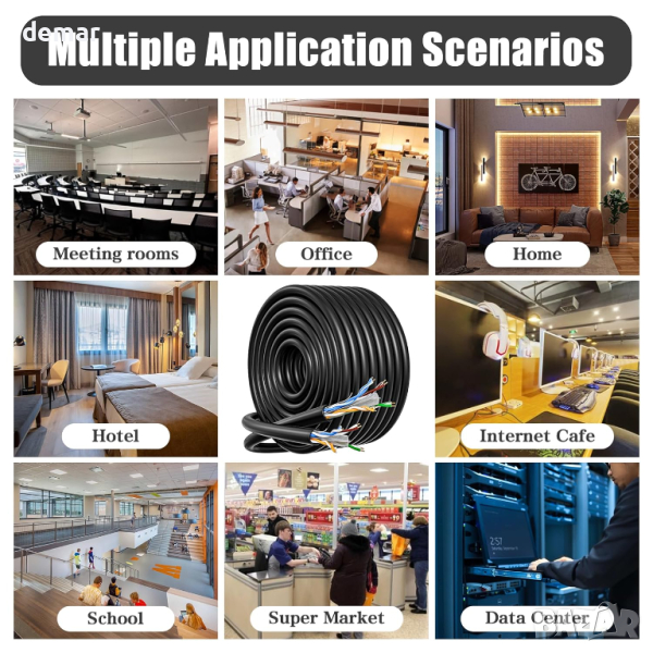 Ethernet кабел: CAT6 UTP 23AWG, 40 м дължина и лесен за рязане за потребителски инсталации. Този неекраниран кабел може да се похвали с устойчивост на атмосферни влияния и здрав черен цвят, идеален за използване на открито. Поддържайки 10BASE-T, 100BASE-TX и 1000BASE-T/1000BASE-TX, той осигурява високоскоростна свързаност с до 250 Mhz честотна лента. Неговият UTP дизайн минимизира смущенията за оптимално качество на сигнала, докато издръжливият PVC външен слой гарантира дълголетие. Изработен от високопрецизен алуминий с медно покритие, той е лек и гъвкав, подходящ както за домашни, така и за офис настройки. Оборудван за RJ45 портове, така че трябва сами да оборудвате RJ45 конектори. Позволява многостранна свързаност, съобразена с вашите нужди.