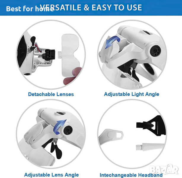 МНОГОЦЕЛЕВИ ЛУПИ за РАБОТА НА БЛИЗО: Лупи с лента за глава за работа отблизо като зъболекари, електротехници, бижутери, шивачи, занаяти, красота, боядисване, заваряване и възрастни хора.