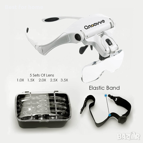 Мултифункционални очила с ЛЕД осветление и 5 сменяеми лупи Qanoavve
