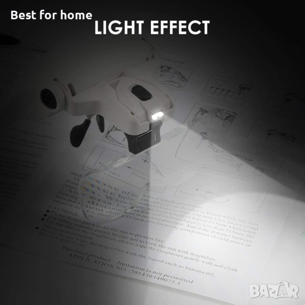 Инструкции за безопасност: Моля, свалете лупата на лентата за глава, когато вървите, за да избегнете падане и сблъсък
