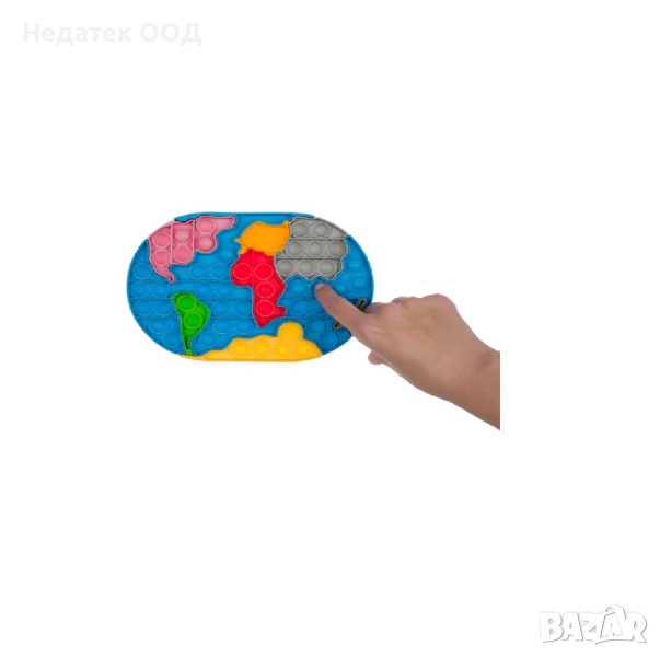 Карта на света на Fidget, сглобена с цветни части „Pop It“.