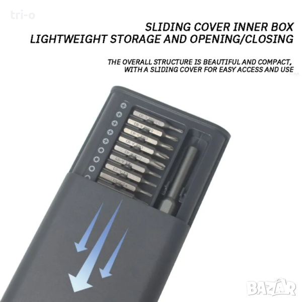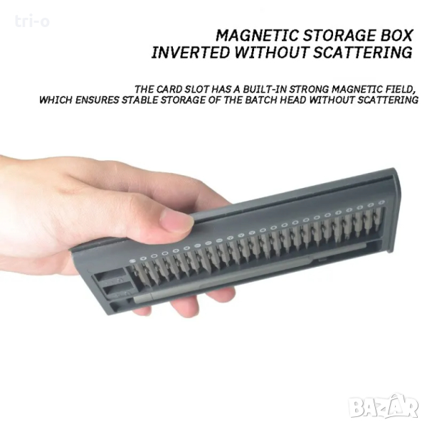 Магнитна кутия за съхранение: Битът има вграден силен магнит, който задържа бита здраво, за да не пада.