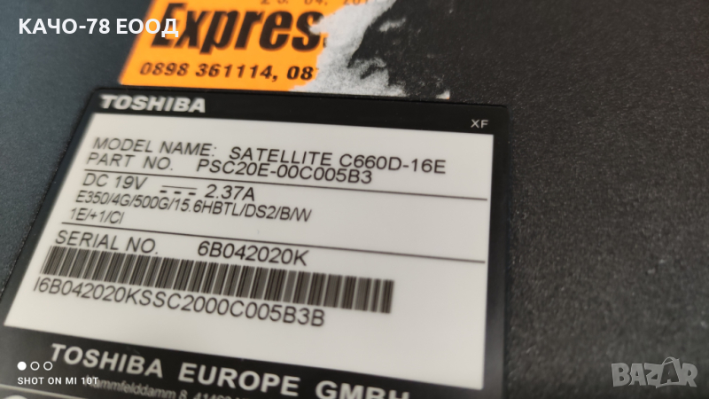 Лаптоп Toshiba Satellite C660D-16E → Обява 44774447