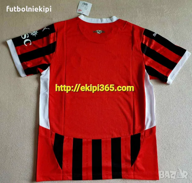 Уникална титулярна червено/черна тениска Милан НОВ сезон 2024/25. 125години е знака на домакинската тениска на тима през този сезон, като към титулярните червено/черни цветове е прибаване и белият цвят в екипа през този сезон. Титулярният спонсор FlyEmirates остава и през този сезон на тима, като на левият ръкав седи Италианската компания преовзвач на контейнтери по целият свят MSC.