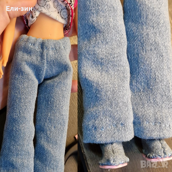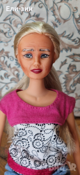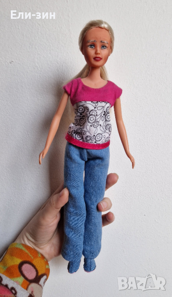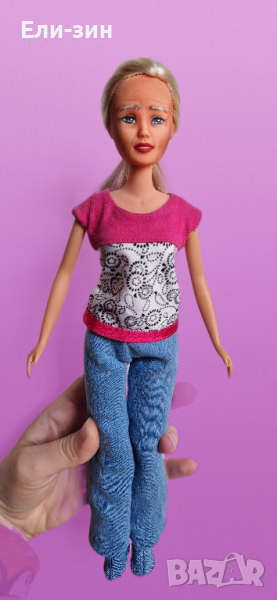 Има 5 точки на движение и ръчно изработени дънки и обувки. Блузата е оригинална, фабрична. Може да се ореоблича, не е зашита в дрехите си. Куклата върху която е рисувана беше чисто нова.