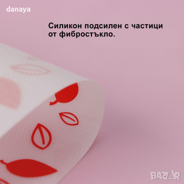 Армираната подложка е изработена от силикон, подходящ за използване в кухнята и усилена с частици от фибростъкло!