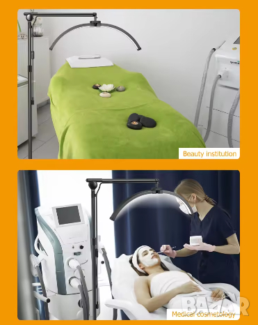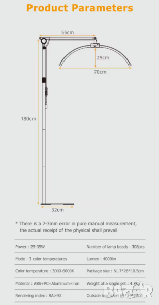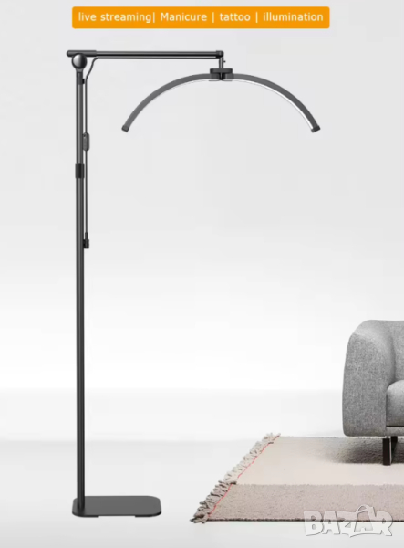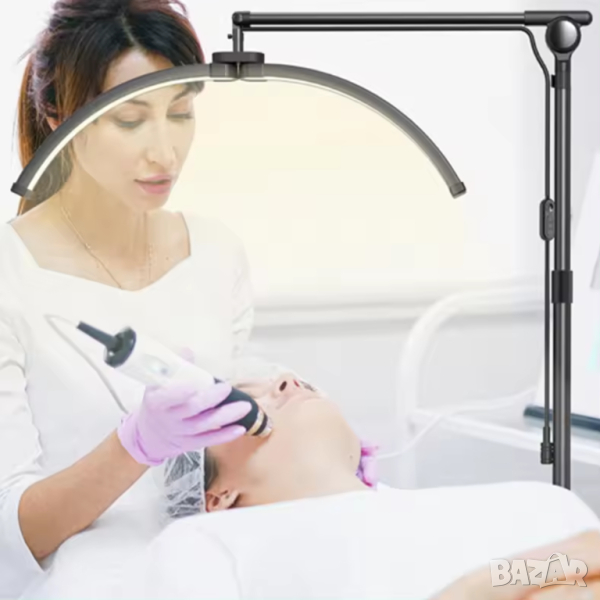 - Голяма извита лампа луна 70см и въртене на 360° – не създава сенки. Перфектно осветява работната зона.