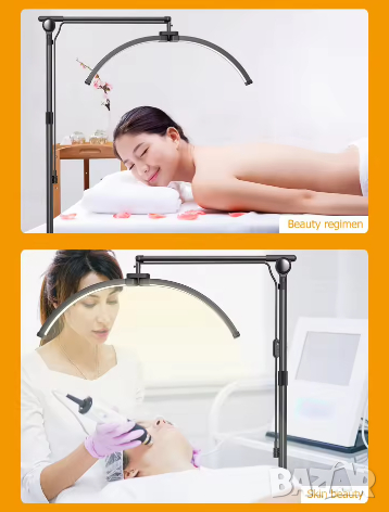 Професионална LED лампа за миглопластика, грим, маникюр, микроблейдинг и татуировки луна със стойка за телефон с иновативна сгъваема осветителна част. Перфектна за създаване на страхотни снимки на вашата работа за социалните мрежи. Най-добрият избор за всеки салон за красота.