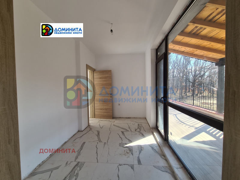 Доминита представя за продажба просторен, светъл и необзаведен тристаен апартамент с две спални, гардеробна (кабинет), просторна дневна, баня с тоалетна и невероятна просторна веранда. Апартаментът е разположен на партерен етаж с гледка към гора, с югозападно изложение, като на терасата се излиза от всички помещения и от гардеробната. Предложението е подходящо за всички обичащи тишината и уединението, и особено за семейства с домашен любимец, имащ нужда от пространство.