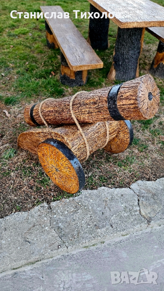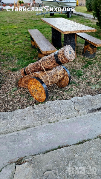 Градински декоративни изделия от щампован бетон имитиращи дърво